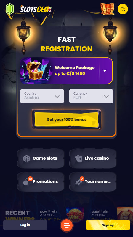 Registrácia v kasíne SlotsGem