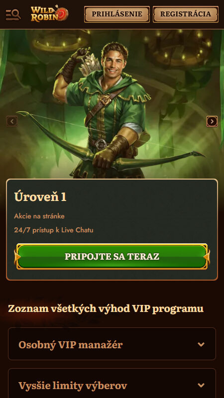 WildRobin má vlastný, systematický VIP program, ktorý hráčov rozdeľuje do piatich jasných úrovní. Vo VIP programe, ktorý je rozdelený do piatich stupňov, sa nachádzajú úrovne od bronzovej až po diamantovú. Hráč sa postupne posúva vyššie, pričom každá úroveň mu otvára cestu k lepším benefitom. Hovoríme napriklad o zvýšených sadzbách pre cashback, prioritnej zákazníckej podpore, alebo pozvánkach na exkluzívne akcie.