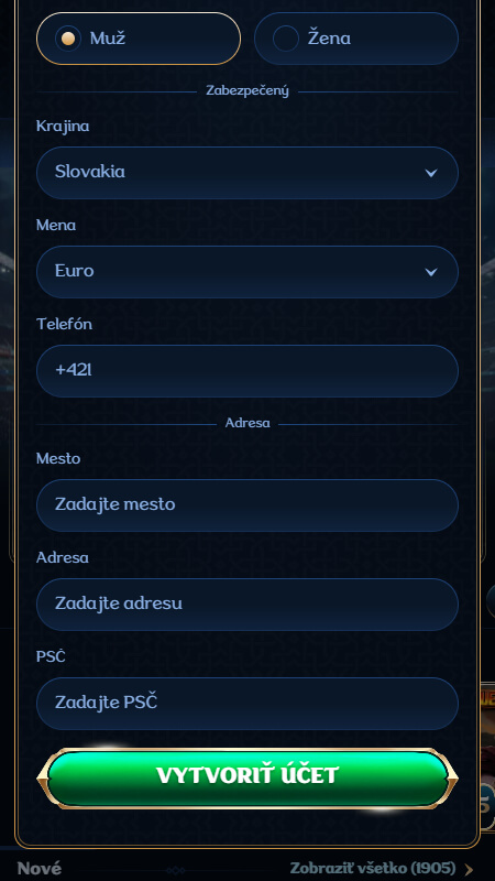 Vyplňte osobné údaje a adresu, následne si zvoľte menu účtu. Uveďte svoje osobné identifikačné údaje – ale pozor, uvedené údaje musia byť pravdivé, pretože môžu byť overované pri výbere výhier.